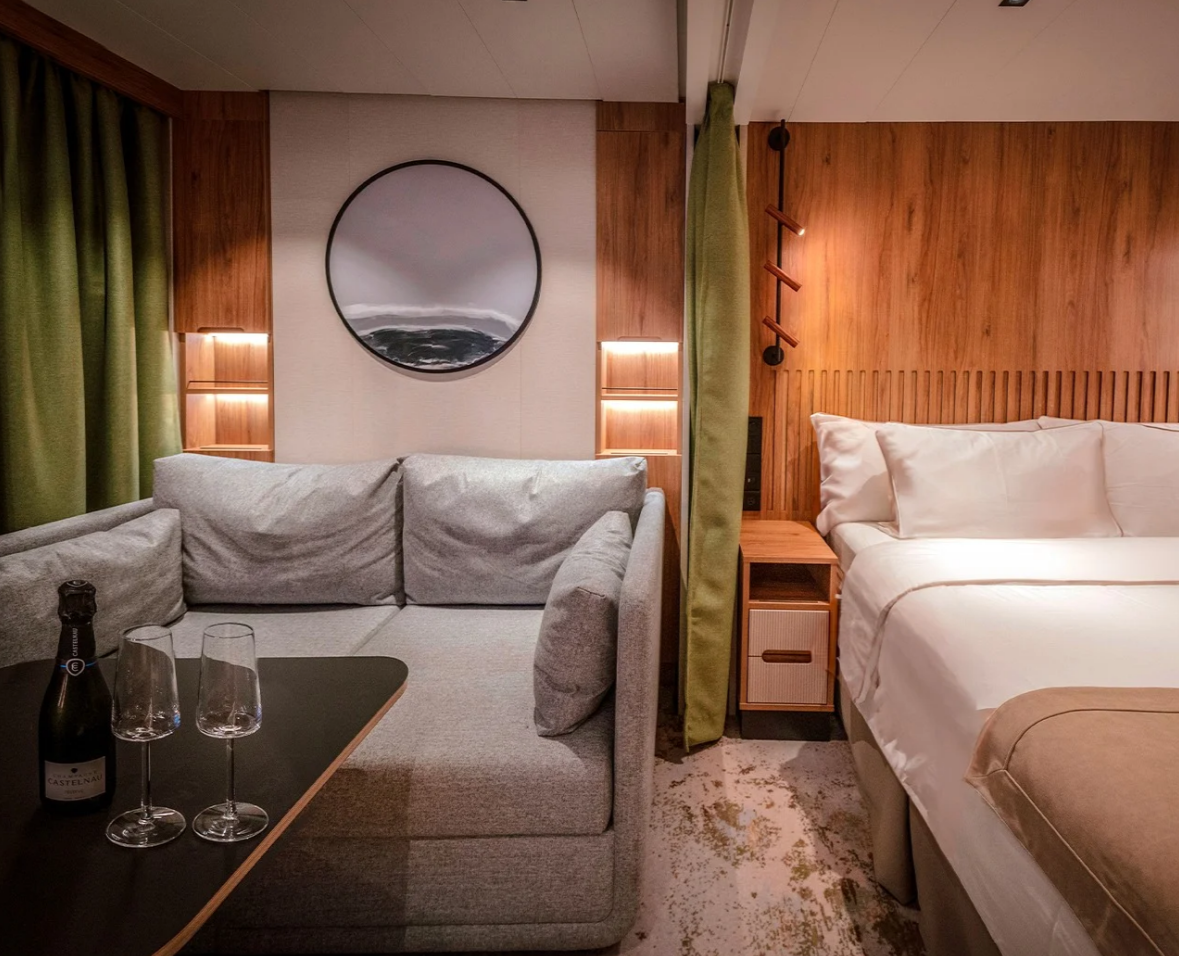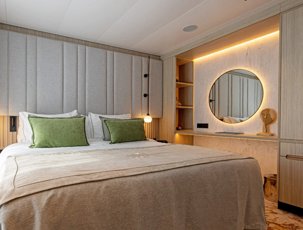 Основные спальные места: двуспальная кровать, конвертируемая в две односпальные по запросу.