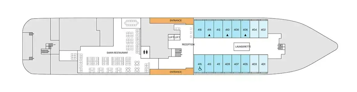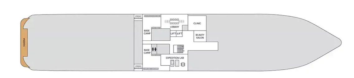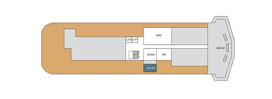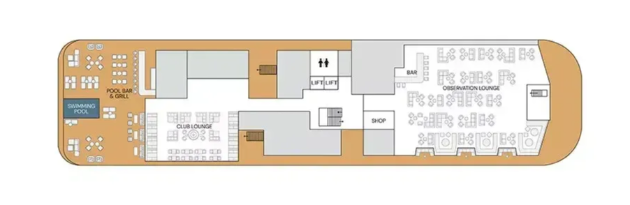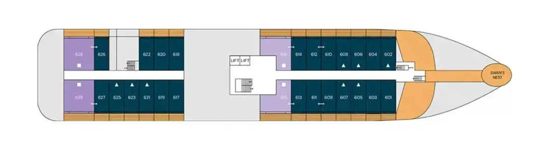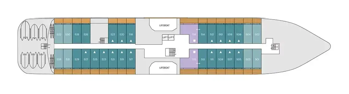Расположена на 5 палубе, в носовой и кормовой части судна.