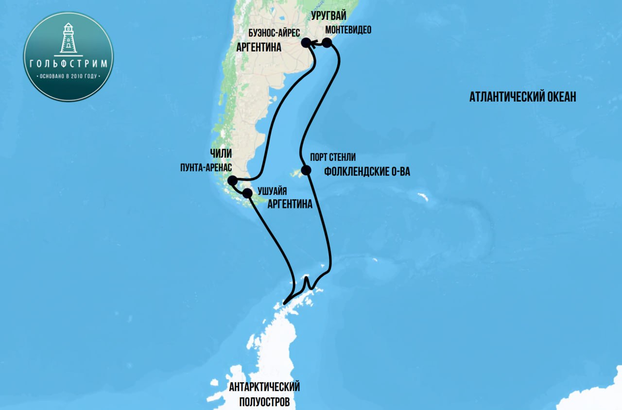 Маршрут: Аргентина - Чили - Антарктический п-ов - Фолклендские о-ва - Уругвай - Аргентина